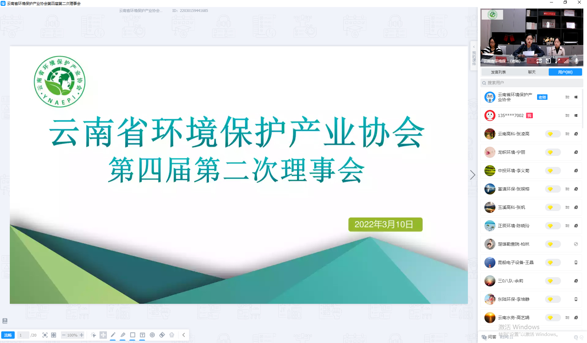 3月10日上午9:30,云南省環(huán)境保護(hù)產(chǎn)業(yè)協(xié)會第四屆第二次理事會以線上會議的形式召開,會議由第四屆理事會會長張齊主持,第四屆理事會理事及監(jiān)事共計80余人參加了本次會議。