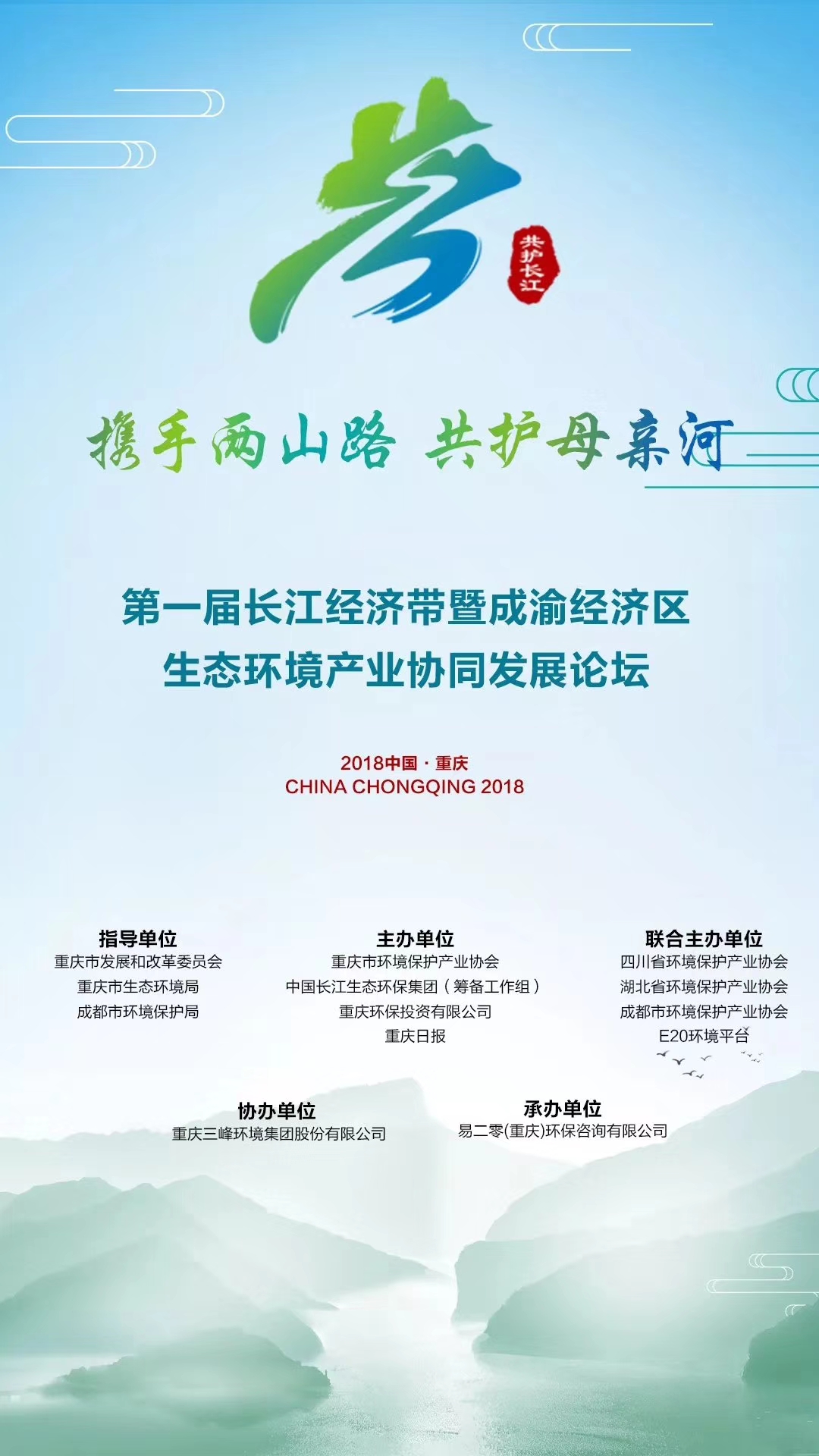 本次論壇是長江經(jīng)濟帶生態(tài)環(huán)境產(chǎn)業(yè)業(yè)界首次高峰論壇,主題為“攜手兩山路、共護母親河