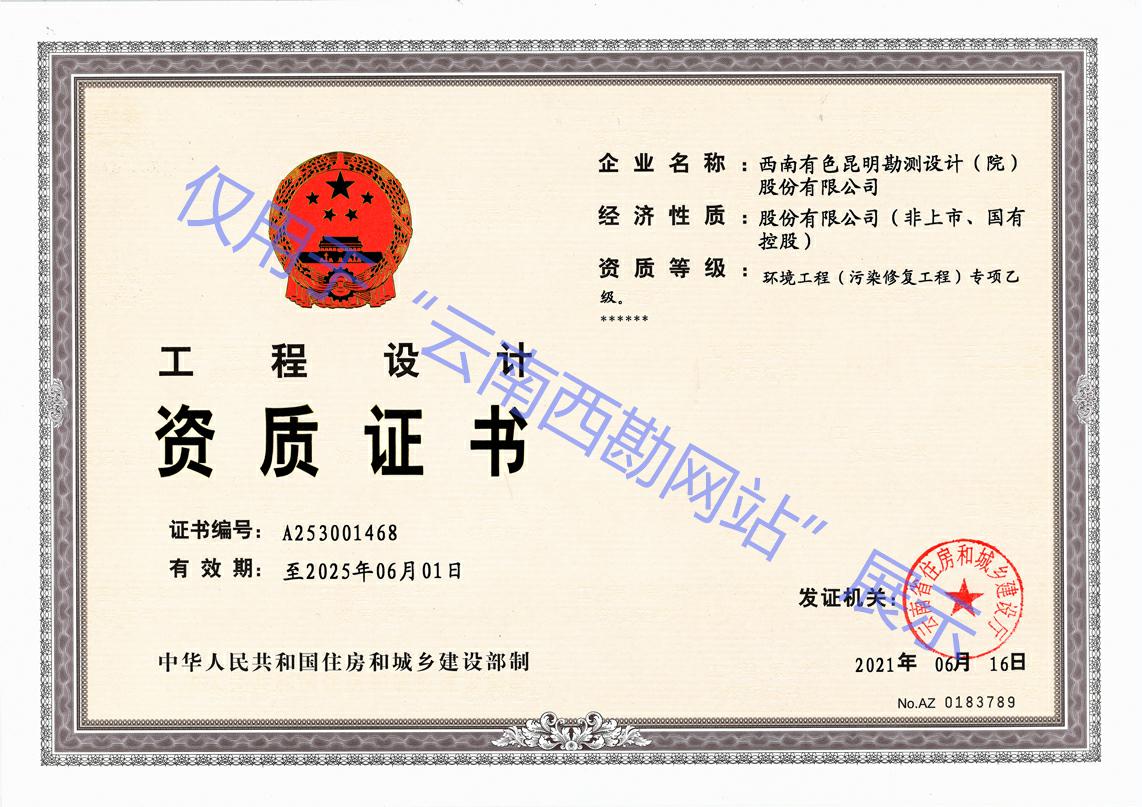 西南有色昆明勘測(cè)設(shè)計(jì)(院)股份有限公司,始建于1953年,持有住建、自然資源、環(huán)保等專業(yè)多項(xiàng)資質(zhì)證書,在工程勘察、礦產(chǎn)勘查、地質(zhì)災(zāi)害防治、生態(tài)修復(fù)、土壤污染調(diào)查治理、國(guó)土開發(fā)利用、水資源調(diào)查評(píng)價(jià)與開發(fā)、城鄉(xiāng)規(guī)劃、工程測(cè)繪與攝影測(cè)量、地基與基礎(chǔ)處理工程等多專業(yè)領(lǐng)域能提供全過程服務(wù)的高新技術(shù)企業(yè) ,是質(zhì)量、環(huán)境和職業(yè)健康安全三體系認(rèn)證單位