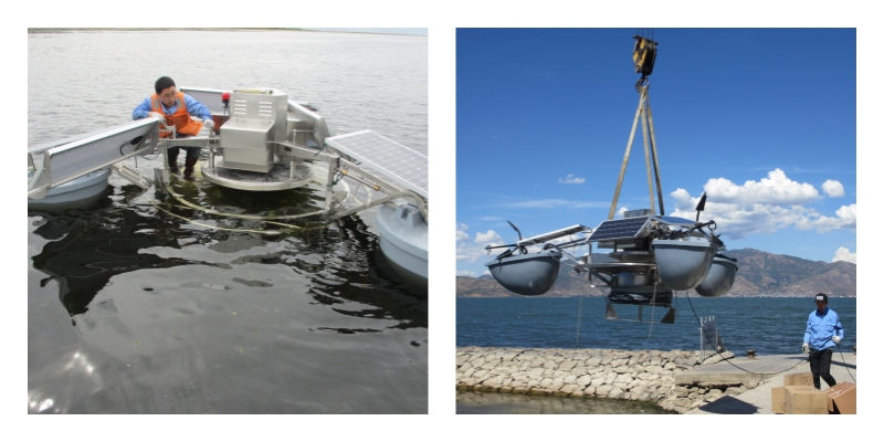 水上對(duì)太陽能驅(qū)動(dòng)水生生態(tài)設(shè)備進(jìn)行調(diào)試,以確保設(shè)備能夠正常運(yùn)行